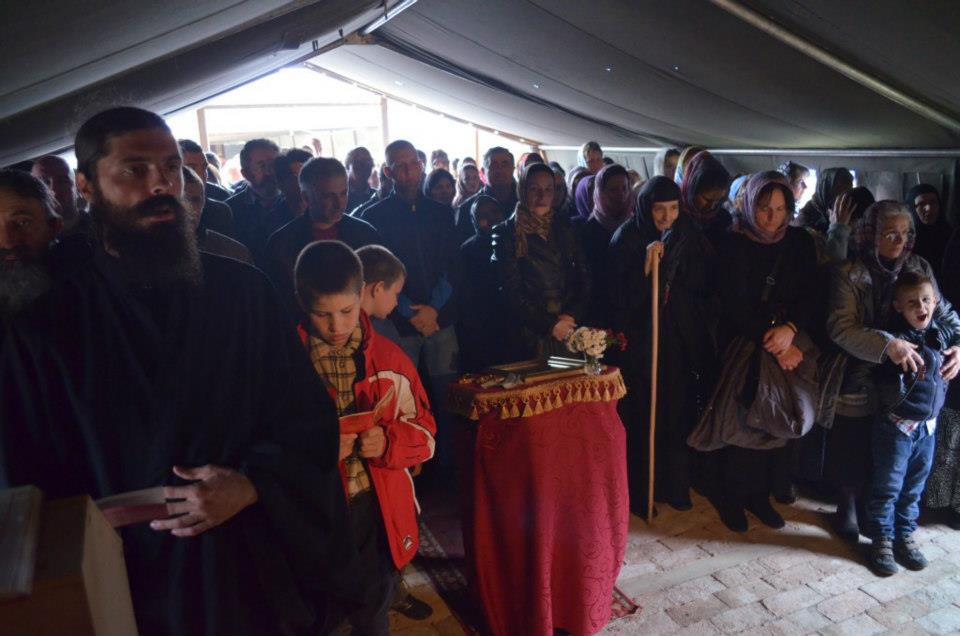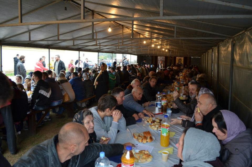 После Свете Литургије је била трпеза љубави, на којој је народ песмом сведочио ИСТИНУ, певајући да је КиМ Србско и да нећемо римског јеретика папу.